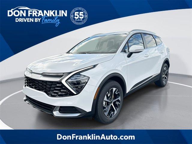 Discover the clean and certified 2025 Kia Sportage EX in Glacial White Pearl. With only 323 miles, this all-wheel drive SUV combines efficiency and comfort, offering 23/26 MPG and a 172-point inspection certified by Don Franklin