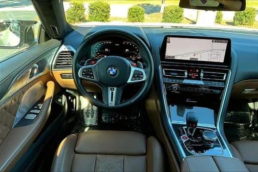 Experience luxury and high performance with the 2023 BMW M8 Competition Gran Coupe, featuring impressive tech and safety features like adaptive cruise control and blind spot monitoring