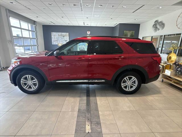This 2021 Ford Explorer XLT in Rapid Red Metallic boasts low mileage of just 34,119 miles. It features heated seats, a third-row seat, a moonroof, and a navigation system, ensuring both comfort and utility for any journey